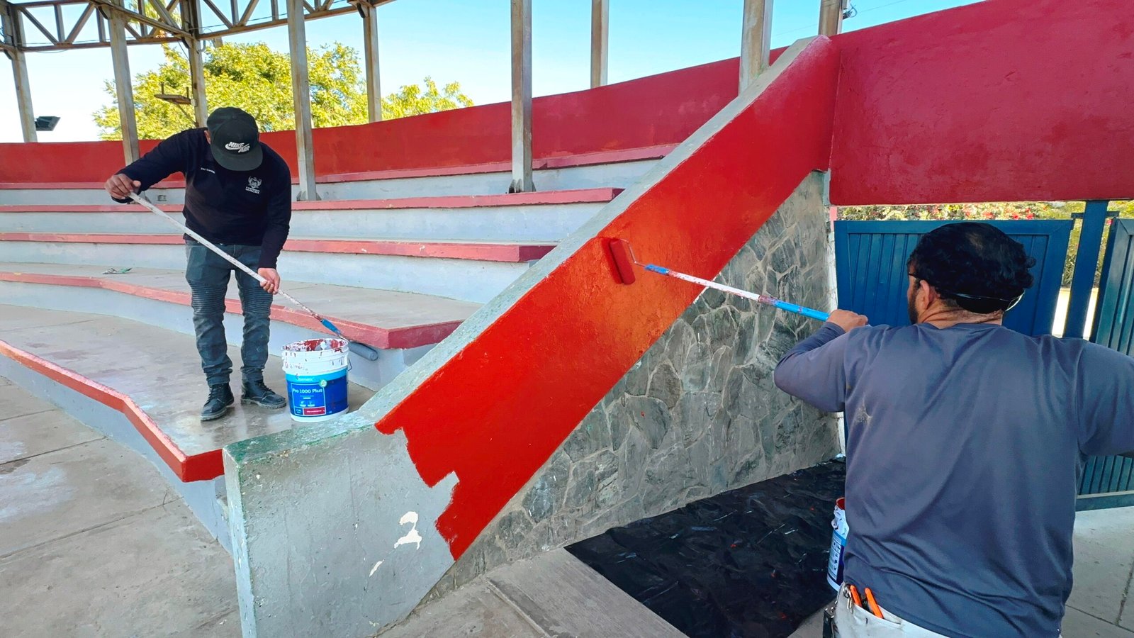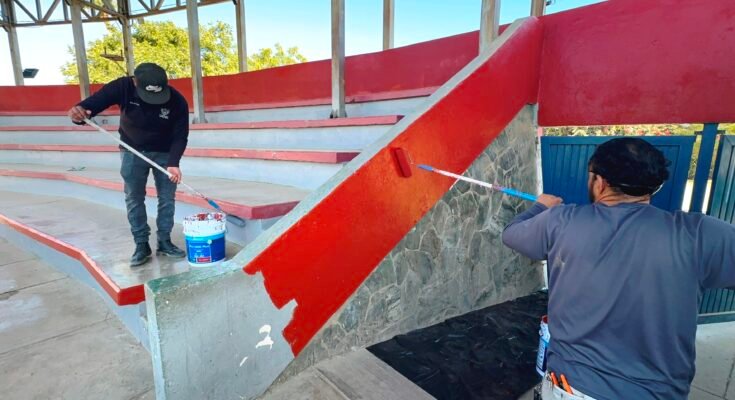 Señaló que “personal del área de parques y jardines estuvo en la población de Todos Santos, con labores de pintura de accesos, escaleras y gradas del campo de béisbol ´Jesús Rosas Izquierdo´, brindando un mejor espacio público para las y los habitantes de la Delegación y sus visitantes”.
