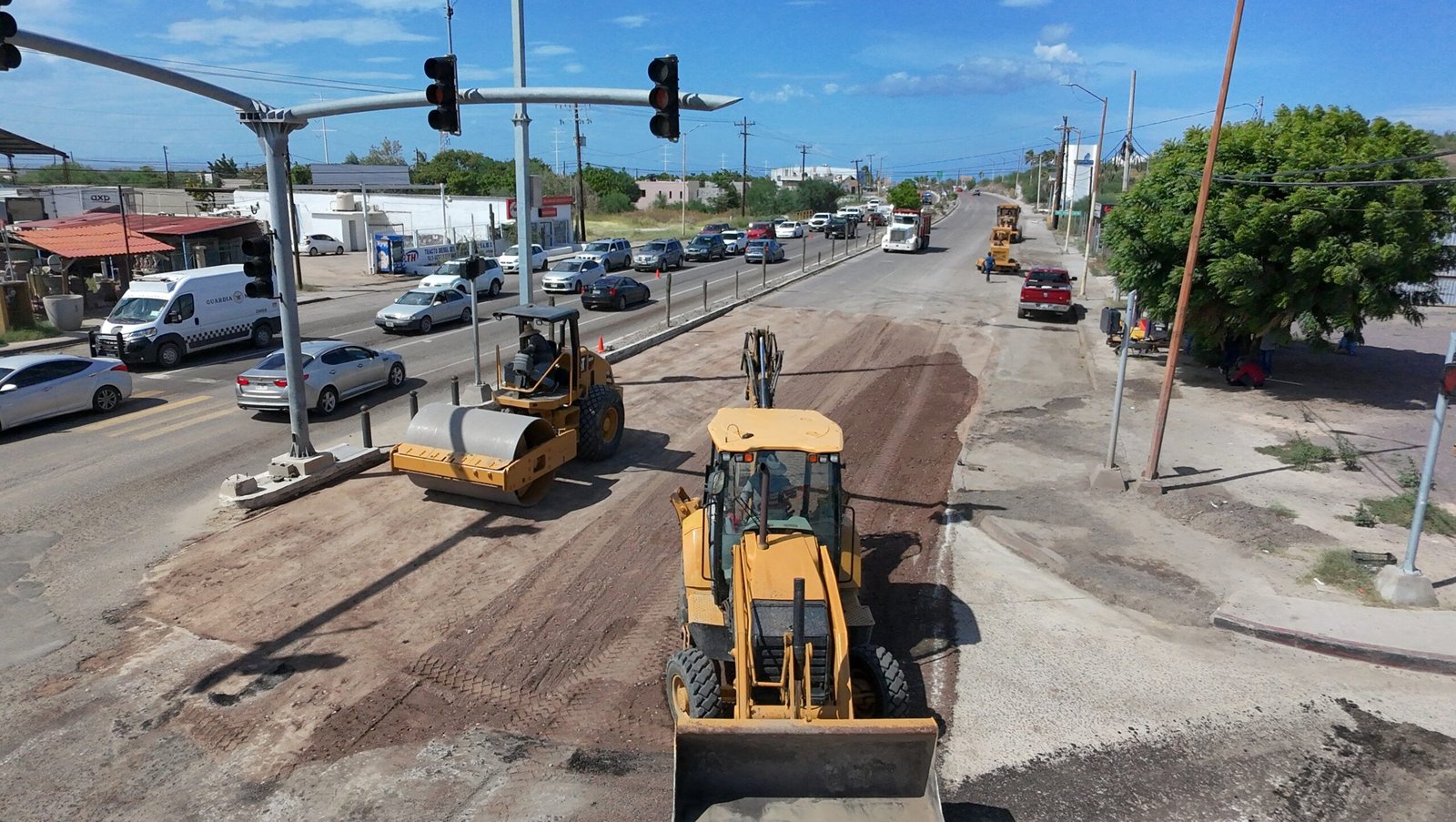 También se llevó a cabo el retiro de tierra acumulada en el bulevar Constituyentes, y en el vado de la colonia Valle Dorado, además, trabajos de bacheo sobre el libramiento Daniel Roldan de Forjadores hasta Agustín Olachea.