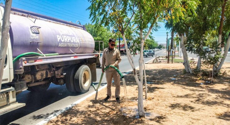 - Destinan 250 mil litros de agua tratada para el riego y mantenimiento de espacios públicos