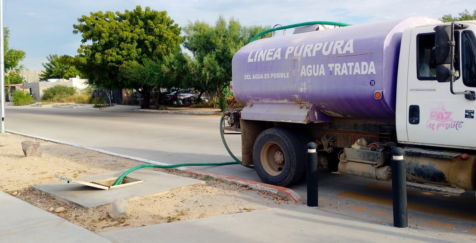 Como parte de los programas para el cuidado del medio ambiente impulsados por la presidenta municipal de La Paz, Milena Quiroga Romero, durante el mes de febrero, con la pipa púrpura se reutilizaron 530 mil litros de agua tratada para regar diferentes espacios públicos en la ciudad.