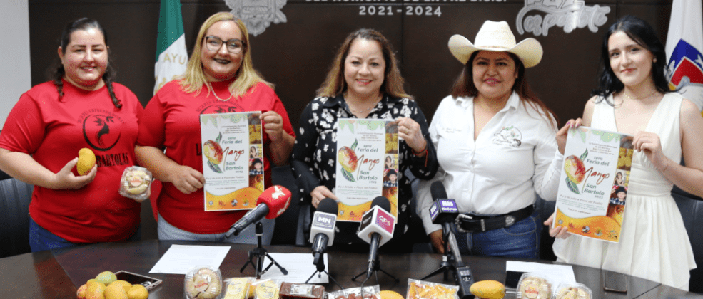 La comunidad de San Bartolo celebrará la primera edición de la Feria del Mango, este fin próximo 8 y 9 de julio, así lo dieron a conocer la Directora de Fomento Económico del H. XVII Ayuntamiento de La Paz, Mavi Flores Olachea, y mujeres emprendedoras de la región, en una rueda de prensa realizada en la Sala de Cabildo Municipal.