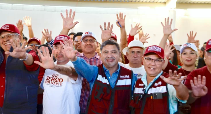 Acompañando al candidato a diputado por el Distrito IV, Sergio Guluarte Ceseña y a la candidata a diputada por el distrito III, Lupita Vázquez, Homero Davis agradeció a las y los presentes por su convicción y lealtad, por “ir a tocar puertas, pero también corazones”.