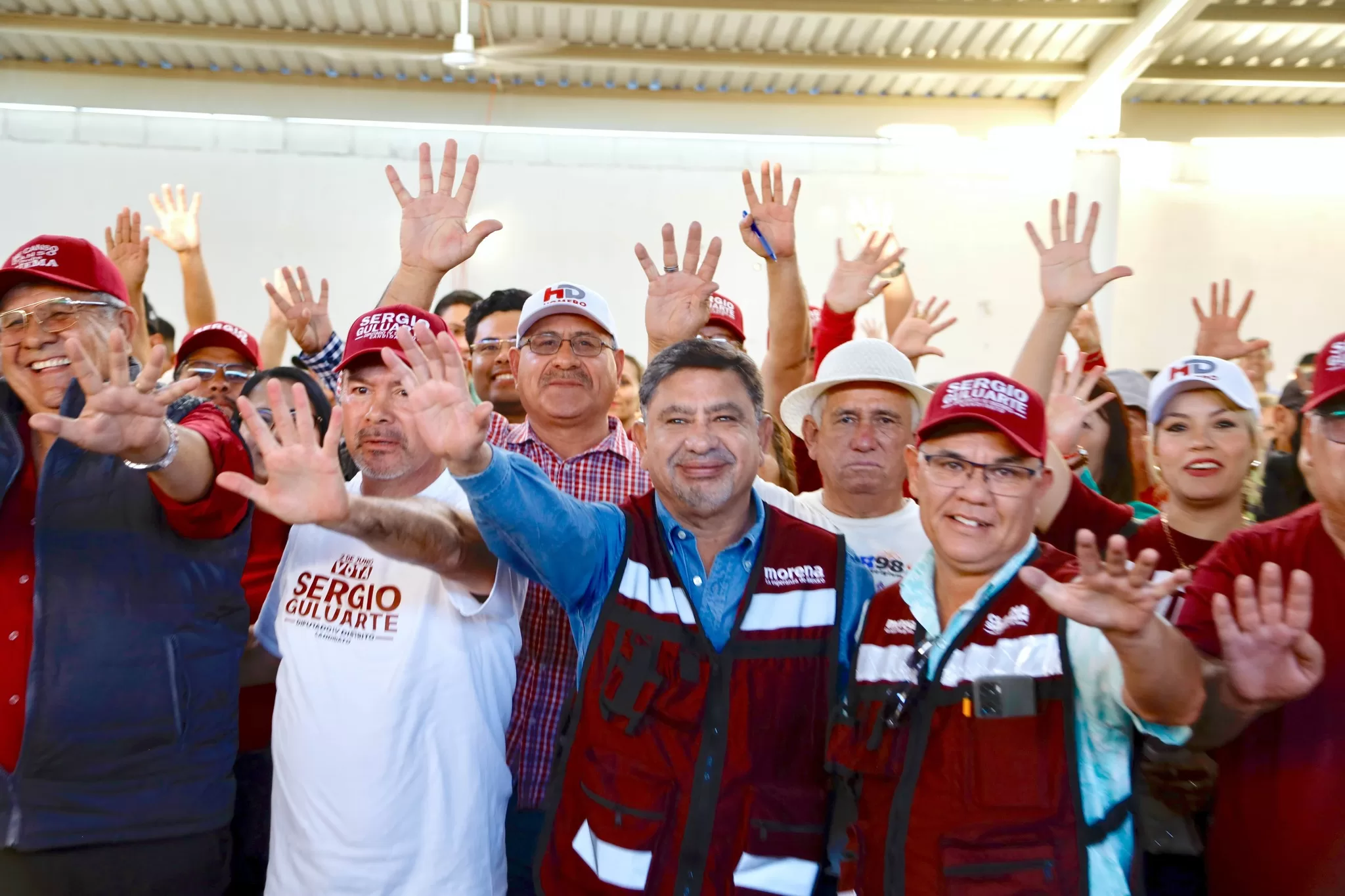 Acompañando al candidato a diputado por el Distrito IV, Sergio Guluarte Ceseña y a la candidata a diputada por el distrito III, Lupita Vázquez, Homero Davis agradeció a las y los presentes por su convicción y lealtad, por “ir a tocar puertas, pero también corazones”.