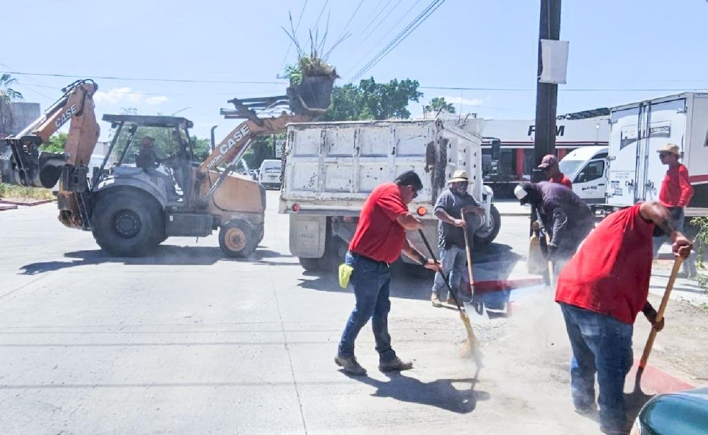 Todos los días cuadrillas del área de barrido manual realizan trabajos de limpieza, deshierbe, poda de diferentes espacios públicos en la ciudad y dejan en puntos específicos todo los residuos generados para que maquinaria pesada proceda a llevárselo, en esta ocasión estos trabajos se realizaron en la calle Morelos hasta calle Juárez y de calle Altamirano hasta calle Álvaro Obregón.