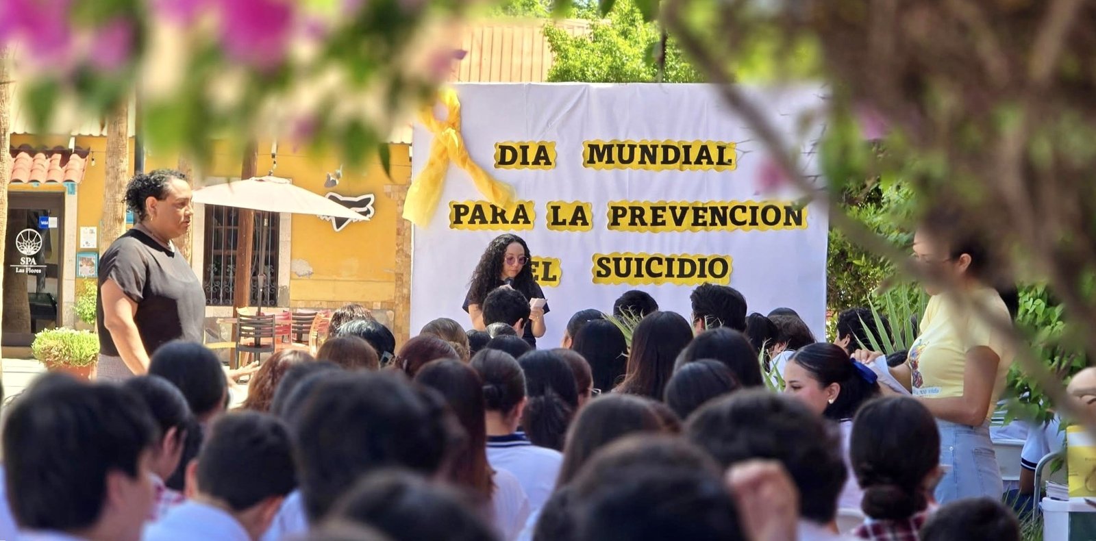 El encuentro se realizó este miércoles en la Plaza “Juárez”, la cual se convirtió en un espacio de reflexión, donde jóvenes estudiantes de nivel medio y superior, escucharon con atención la conferencia de la psicóloga Liliana Delgadillo, quien expuso un tema enfocado en la detección de señales de alerta que permite salvar vidas, detalló la funcionaria