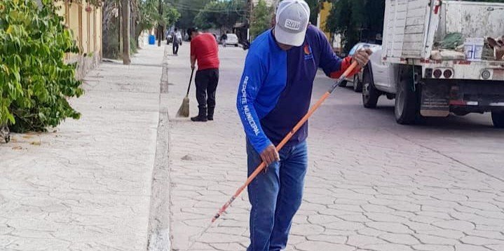 De forma paralela, otro equipo – integrado en su mayoría por mujeres- realiza labores de poda, barrido y limpieza permanente de calles en la colonia Infonavit. Estas acciones son complementarias con el recorrido diario de las rutas establecidas para la recolección de basura.