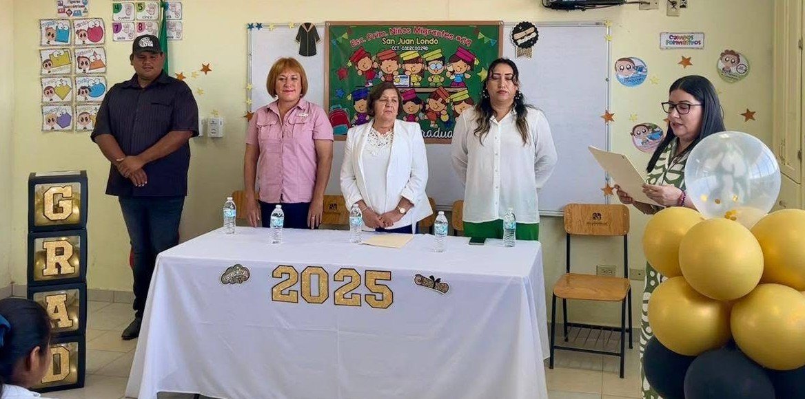 La regidora Guadalupe Villalobos acompañó a la comunidad educativa de la escuela Niños Migrantes No. 29 en la emotiva ceremonia de clausura del ciclo escolar 2024-2025, celebrada en la comunidad de San Juan Londó.