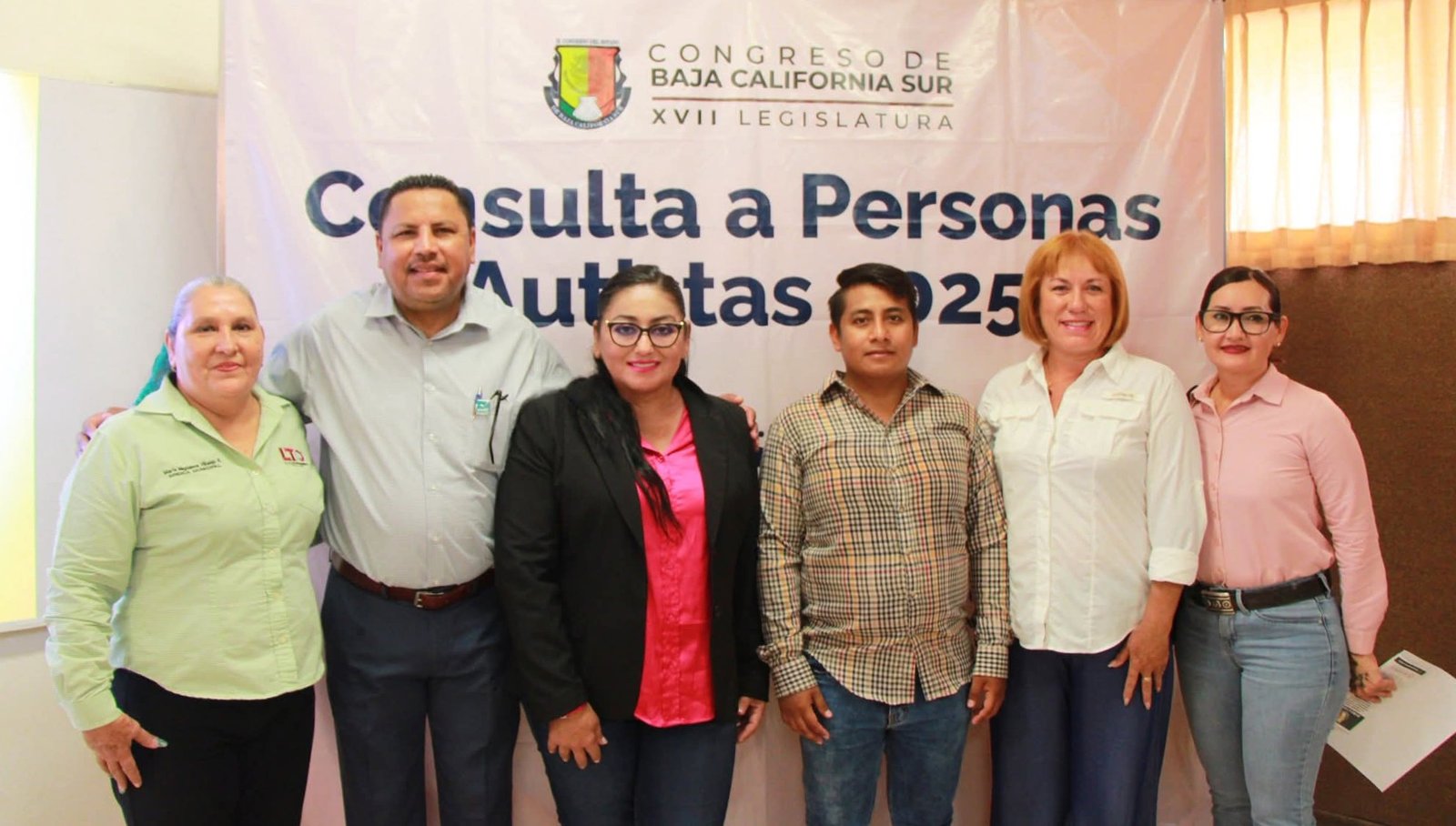 En el encuentro estuvieron acompañados y asesorados por el diputado Martín Escogido Flores, presidente de la comisión permanente de Derechos Humanos, Asuntos Indígenas y Afromexicanos, así como la diputada Dalia Collins Mendoza, presidenta de la comisión permanente de Atención a Grupos Vulnerables y Personas con Discapacidad de la XVII Legislatura del Congreso de Baja California Sur.