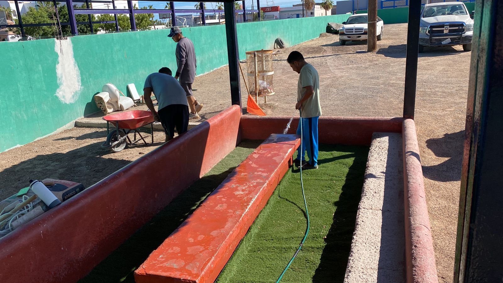 Esta tarea, que lleva casi los tres meses, está a un mes de concluir, y entre los trabajos realizados destacan la recuperación y mantenimiento del pasto, baños y la remodelación de los Dugout del estadio de Béisbol Marco Antonio Mayoral, lo anterior derivado a la próxima Olimpiada Estatal de categoría libre que se llevará a cabo en este municipio.