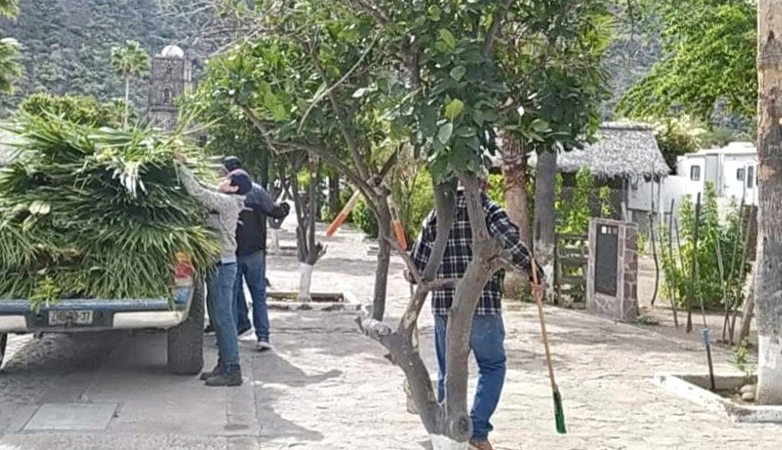 Como parte de estas acciones, se llevó cabo jardinería en la zona central de la comunidad y recolección de residuos vegetales además de barrido de adoquinado, contribuyendo al embellecimiento de la imagen del pueblo emblemático para el bienestar de la comunidad y sus múltiples visitantes.