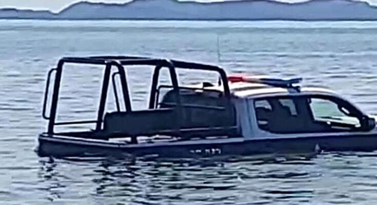 • Se reportó que el agente encargado del servicio en turno, descendió de la unidad rápidamente a brindar un auxilio inmediato, pero minutos después la unidad policiaca accidentalmente entró a la zona de playa yendo a parar al mar.