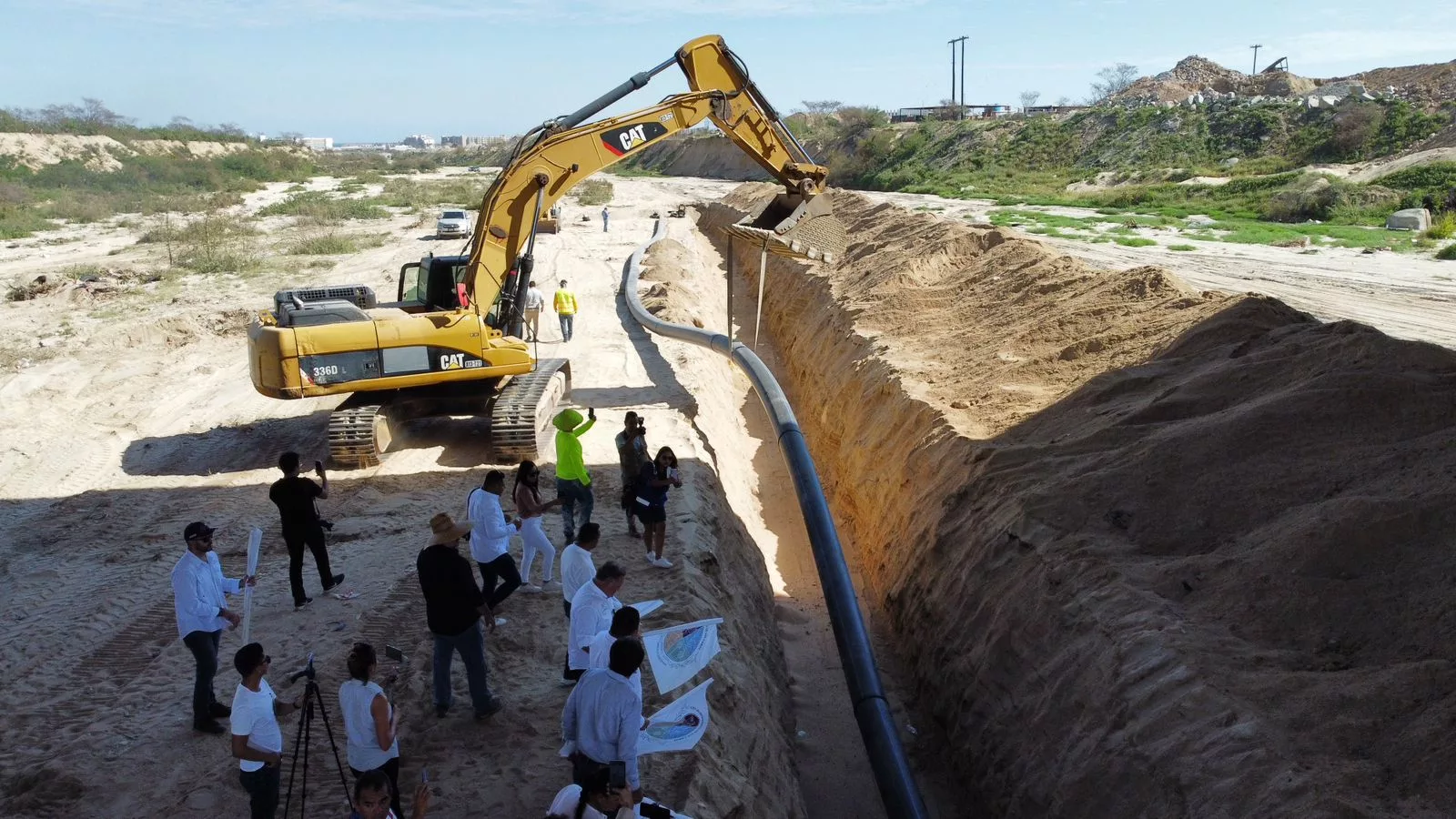 En cumplimiento a la palabra empeñada por el alcalde de hacer llegar el vital líquido a las zonas más altas de Cabo San Lucas, el equipo de Agua Potable de Los Cabos dio inicio al banderazo de obra de la obra integral de construcción de la línea de conducción de La Sanluqueña al tanque de Lomas del Sol, con una inversión de 37 millones 495 mil pesos.