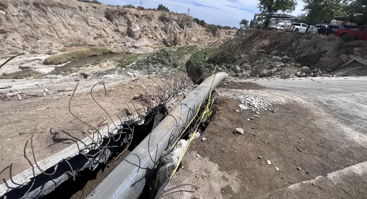 Teniendo un avance del 60 por ciento de la obra integral de interconexión de la de construcción de la línea de conducción de “La Sanluqueña” al tanque de mil de Lomas del Sol, continúan los trabajos sobre la avenida prolongación Leona Vicario a la altura de la colonia Lagunitas, para hacer llegar mayor volumen de agua potable a los sectores de la zona norte de Cabo San Lucas