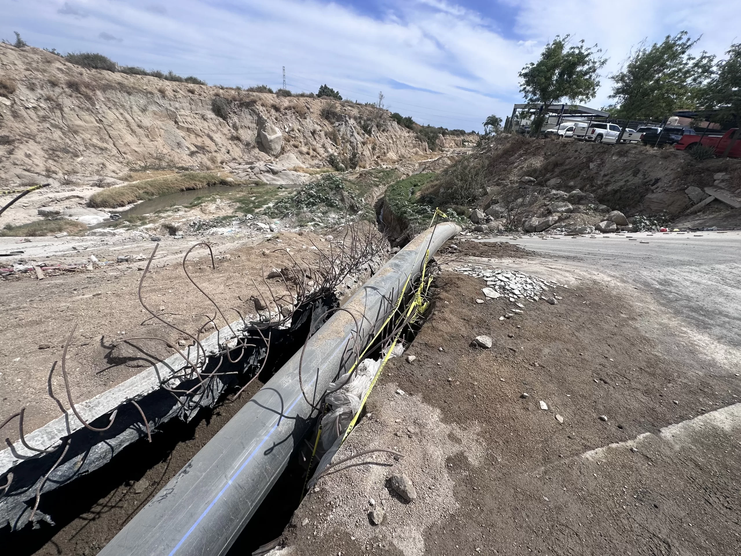 Teniendo un avance del 60 por ciento de la obra integral de interconexión de la de construcción de la línea de conducción de “La Sanluqueña” al tanque de mil de Lomas del Sol, continúan los trabajos sobre la avenida prolongación Leona Vicario a la altura de la colonia Lagunitas, para hacer llegar mayor volumen de agua potable a los sectores de la zona norte de Cabo San Lucas