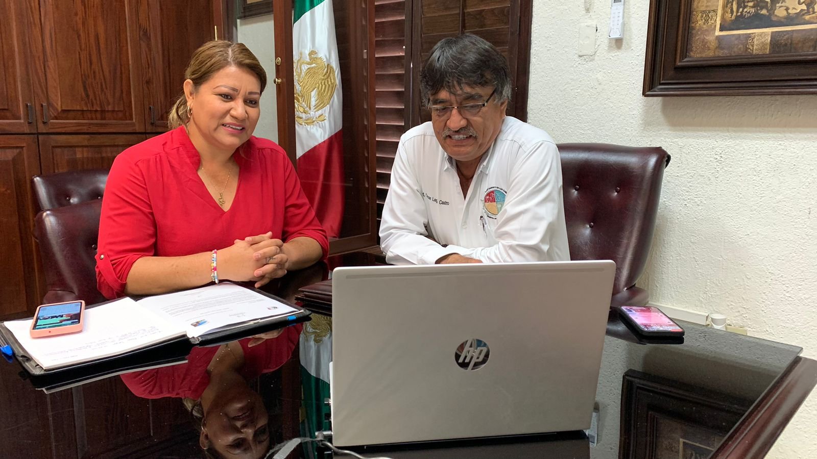 Como parte de la agenda de trabajo de esta mañana, el alcalde Oscar Leggs Castro recibió en la sala de juntas del Palacio Municipal a la secretaria general de la Unión de Cabalgantes Los Cabos Ana Carrillo, donde mantuvieron una reunión vía zoom con la presidenta de la Federación Nacional México a Caballo Silvia Cacho Tamez y el representante internacional Ignacio Islas, quienes hicieron la invitación a mujeres cabalgantes representantes del estado de Baja California Sur a la cabalgata “Amazonas de México”, la cual será la primera cabalgata femenil federada nacional de México que se realizará en la ciudad de Querétaro los días 12 y 13 de noviembre.
