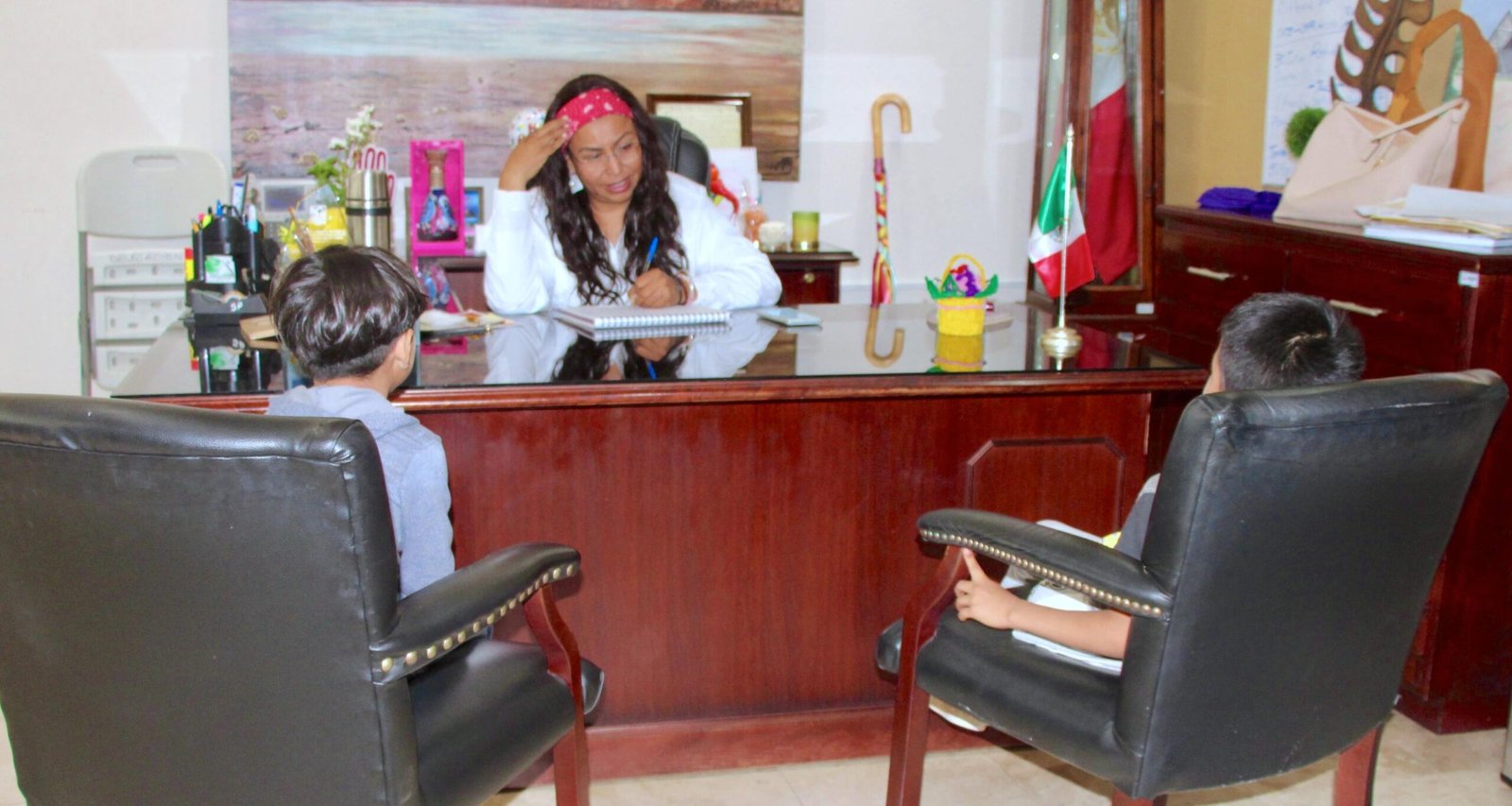 Con el compromiso de atender de manera cercana a la ciudadanía, la delegada de Cabo San Lucas, Karina de la O Uribe, sostuvo un encuentro con la señora Nancy Ramírez Méndez, vecina de la colonia Los Cangrejos, quien solicitó apoyo para su hijo de 7 años, Leonardo Ramírez Méndez, tras haber perdido su pierna izquierda en un accidente ocurrido en Puebla hace cuatro años.