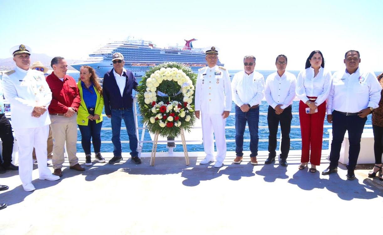 A nombre del Ayuntamiento de Los Cabos, el director general de Desarrollo Social, Cuauhtémoc Carmona Álvarez, dirigió sus ideas a la conmemoración de este Día de la Marina Nacional donde se homenajea a este importante sector que incluye al transporte marítimo, la explotación de recursos y energías marinas, los puertos, la industria de la construcción naval, la pesca y cualquier actividad que tenga que ver con el mar y con la gente de mar en todo México desde 1942 derivado de la promulgación de e la Constitución de 1917 y la reforma al artículo 36 en el cual se decretó a nacionalización de la Marina.