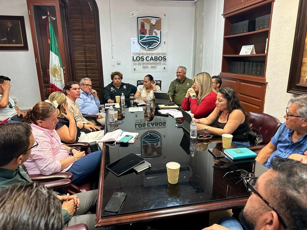 Con el objetivo de implementar acciones que propicien un óptimo ambiente laboral dentro de las áreas que conforman el XV Ayuntamiento de Los Cabos y que se refleje en una mejor atención a la ciudadanía, la directora municipal de Recursos Humanos, Silvia Fernanda Collins Agúndez sostuvo una reunión de trabajo con integrantes del Cabildo de Los Cabos, así como con el tesorero municipal Rigoberto Arce Martínez, el jefe de Gabinete Guillermo Sánchez Flores, el oficial mayor Carlos Alberto Beltrán Olmeda y titulares de diversas dependencias involucradas.