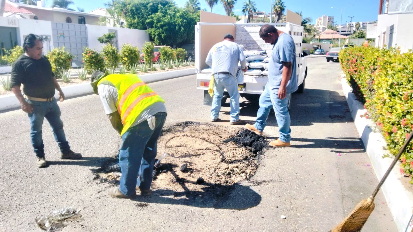 El Ayuntamiento de Los Cabos mantiene de manera continua los trabajos de rehabilitación vial mediante el programa “Caza Baches”, con el objetivo de mejorar las condiciones de movilidad en diversas colonias del municipio.