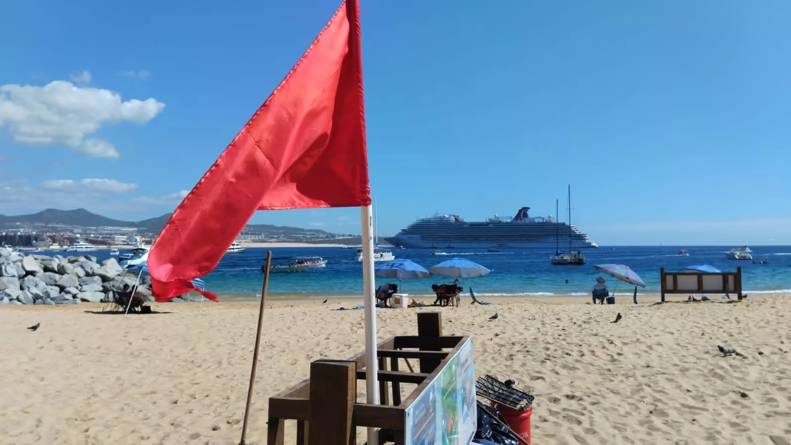 Este viernes 27 de octubre, la dependencia reportó que las playas El Médano, Palmilla, Santa María y Hacienda, cuentan con bandera amarilla, mientras que las playas Las Viudas, El Corsario, La Gaviota, El Surgidero y El Chileno, se encuentran con bandera roja. La playa Acapulquito y demás ubicadas en el corredor turístico se mantiene con bandera negra.