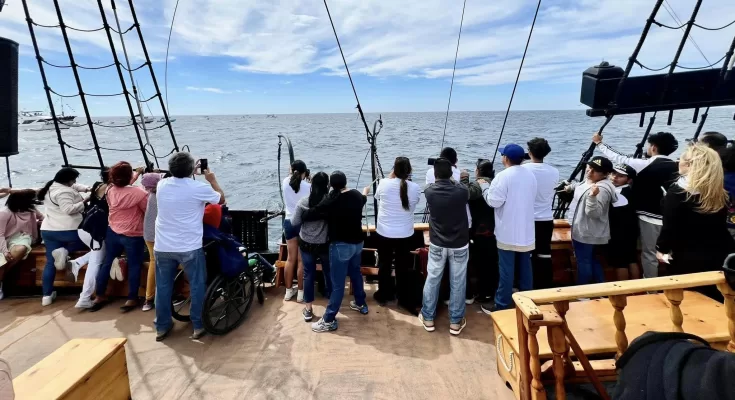 Con el objetivo de generar convivencia, esparcimiento y aprendizaje, el Gobierno de Los Cabos a través de la Dirección Municipal de Salud y el Instituto Municipal para el Desarrollo e Inclusión de Personas con Discapacidad en colaboración con la Fundación Ola de Ayuda A.C. y de la Unión de Choferes Dos Mares, se realizó un paseo por la Bahía de Cabo San Lucas y el avistamiento de ballenas a bordo del barco pirata Bucanner Queen para 30 personas con discapacidad y 20 acompañantes.