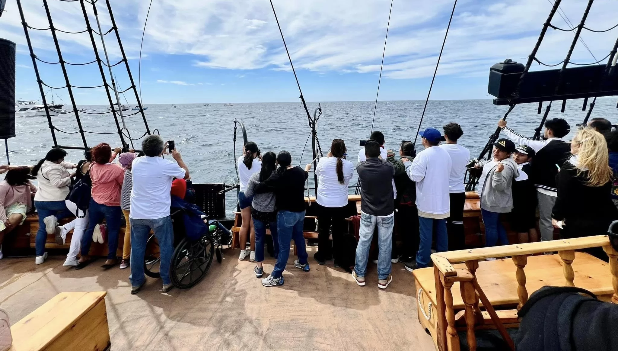 Con el objetivo de generar convivencia, esparcimiento y aprendizaje, el Gobierno de Los Cabos a través de la Dirección Municipal de Salud y el Instituto Municipal para el Desarrollo e Inclusión de Personas con Discapacidad en colaboración con la Fundación Ola de Ayuda A.C. y de la Unión de Choferes Dos Mares, se realizó un paseo por la Bahía de Cabo San Lucas y el avistamiento de ballenas a bordo del barco pirata Bucanner Queen para 30 personas con discapacidad y 20 acompañantes.