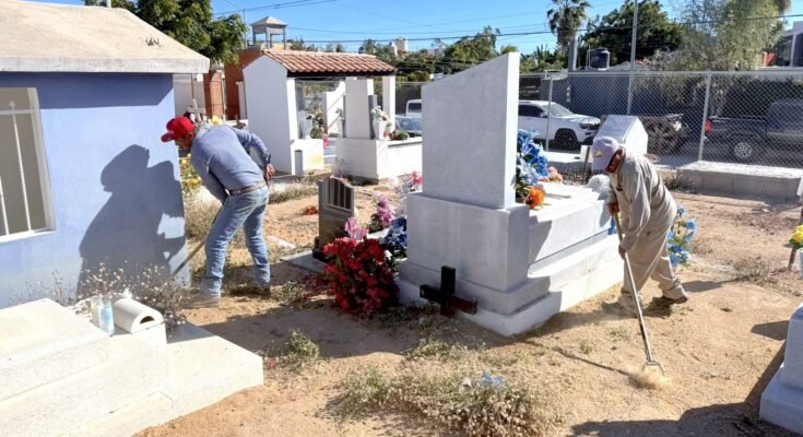 Con el objetivo de conservar en óptimas condiciones los cementerios del municipio, el Ayuntamiento de Los Cabos, a través de la Dirección General de Servicios Públicos implementa de manera permanente acciones de limpieza y rehabilitación en los distintos panteones.