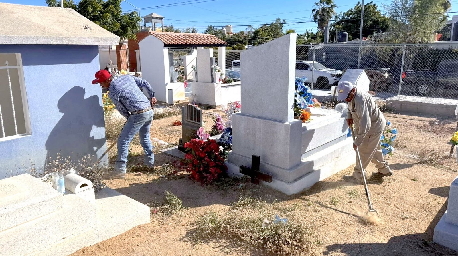 Con el objetivo de conservar en óptimas condiciones los cementerios del municipio, el Ayuntamiento de Los Cabos, a través de la Dirección General de Servicios Públicos implementa de manera permanente acciones de limpieza y rehabilitación en los distintos panteones.