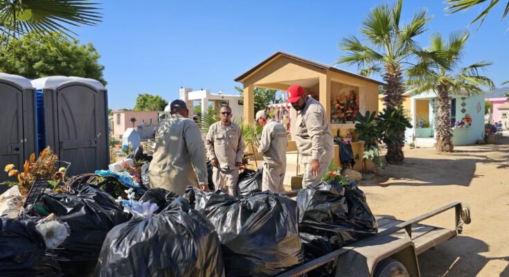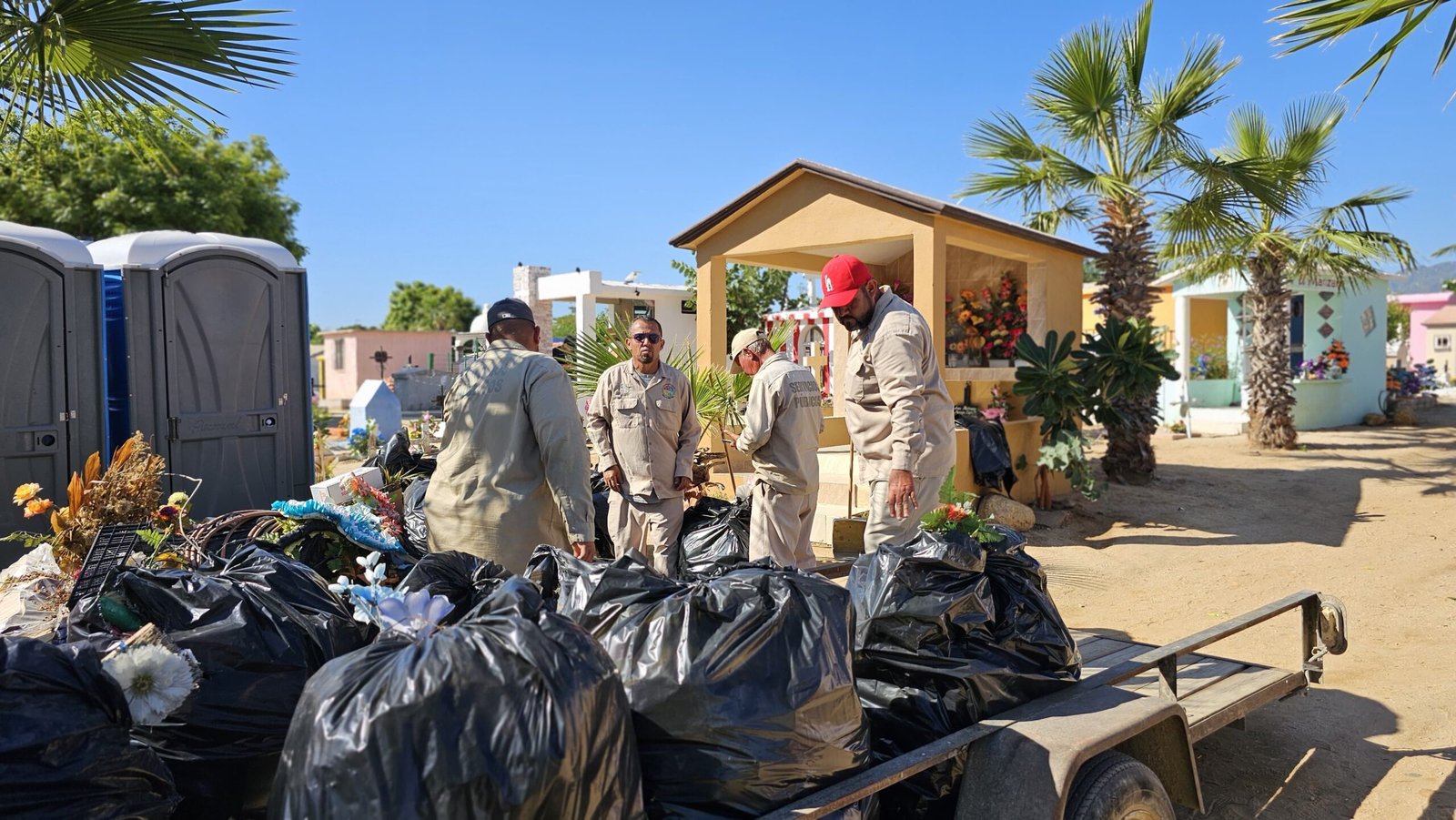 Al concluir la celebración del Día de Muertos, personal de la Dirección General de Servicios Públicos implementó una intensa jornada de limpieza y recolección de basura, tanto al interior como exterior de cementerios en San José del Cabo.