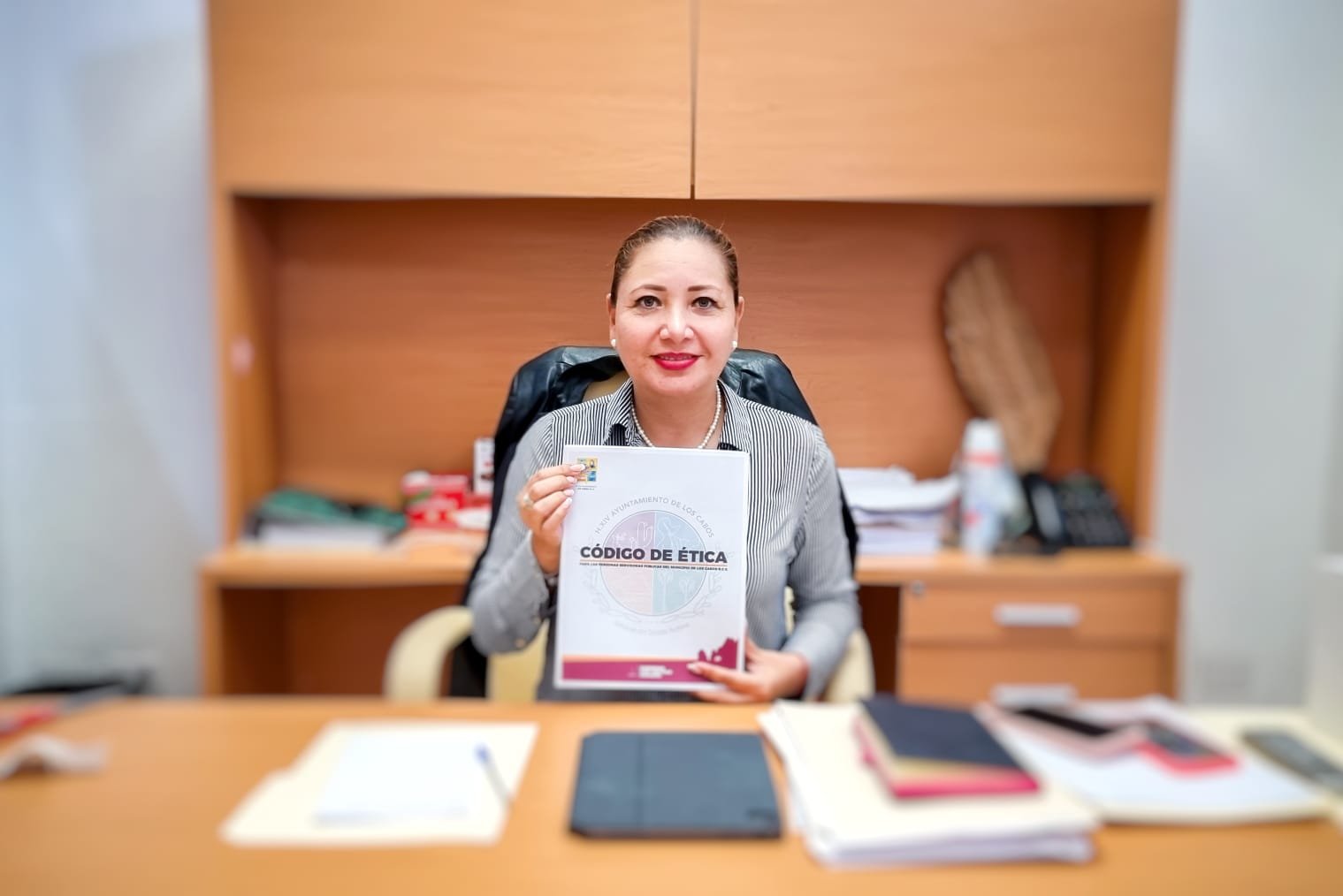 A través de la Coordinación Municipal Anticorrupción adscrita a la Contraloría General, desde el pasado 22 de marzo se firmó el Código de Ética, para lo cual, a partir de la fecha promovemos programas de difusión, capacitación y sensibilización del instrumento normativo a través de diversos medios como los portales de internet www.loscabos.gob.mx y www.transparencialoscabos.gob.mx, así como en la página de Facebook Ayuntamiento de Los Cabos”, explicó la contralora municipal.