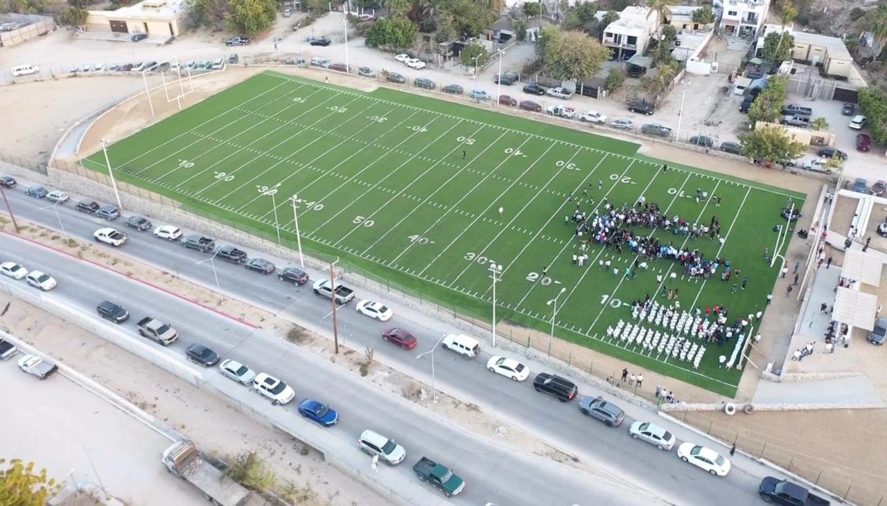 Con una inversión de 14 millones 999 mil 482 pesos, el XV Ayuntamiento de Los Cabos, a través de la Dirección General de Desarrollo Social y Fondo de Aportaciones para la Infraestructura Social (FAIS) llevó a cabo la entrega del empastado en la cancha de fútbol americano ubicada en el parque denominado Aguajitos, el cual beneficiará a 8 mil habitantes.