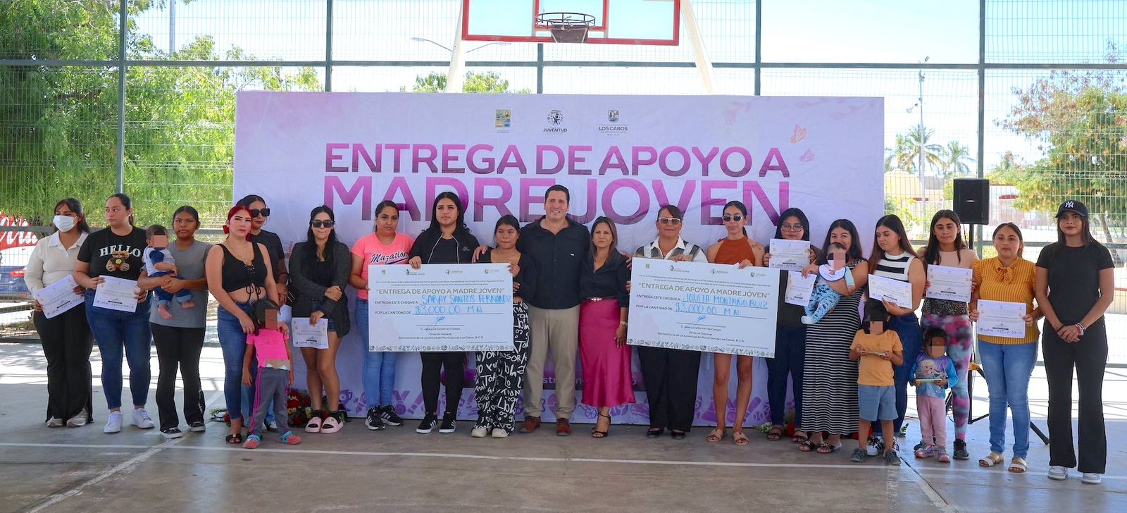 La entrega se llevó a cabo en la cancha deportiva de la colonia, donde 20 madres jóvenes recibieron un apoyo económico individual de 3 mil pesos, lo que representa una inversión total de 60 mil pesos destinada a contribuir en gastos prioritarios del hogar, como alimentación, educación y necesidades básicas.