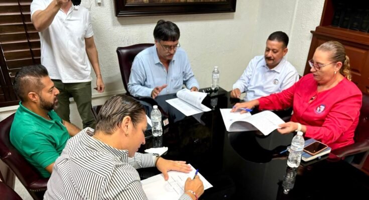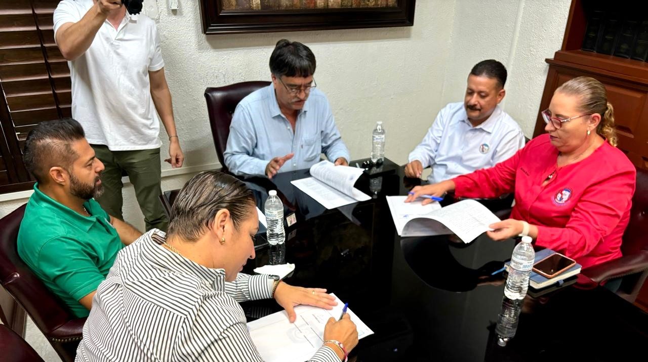 Finalmente durante la firma del convenio de donación, estuvieron presentes el tesorero general Christopher Albertini Camacho Ortegón, el secretario estatal del Sindicato de Burócratas Marco Antonio Cota Aguilar, así como las y los integrantes del Comité Pro-Construcción Salón Sindical quienes agradecieron la certeza de la tierra para tener un registro de propiedad conforme lo dicta la ley.