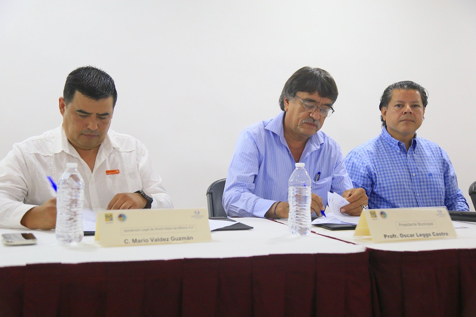 - El alcalde de Los Cabos, Oscar Leggs Castro, encabezó la firma del convenio entre el Ayuntamiento y la asociación civil World Visión México.