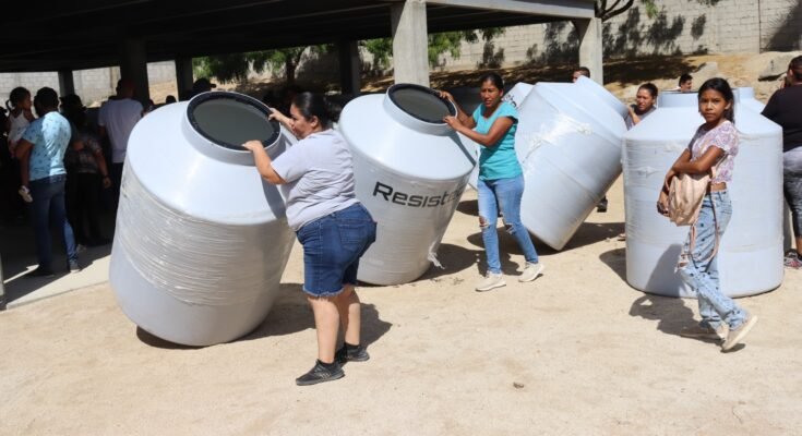 En un esfuerzo por mejorar las condiciones de vida y garantizar el acceso al agua potable, el presidente municipal Oscar Leggs Castro y la directora municipal de Atención Ciudadana, Dina Margarita de la Paz Araiza hicieron la entrega de 150 tinacos a familias de Cabo San Lucas.