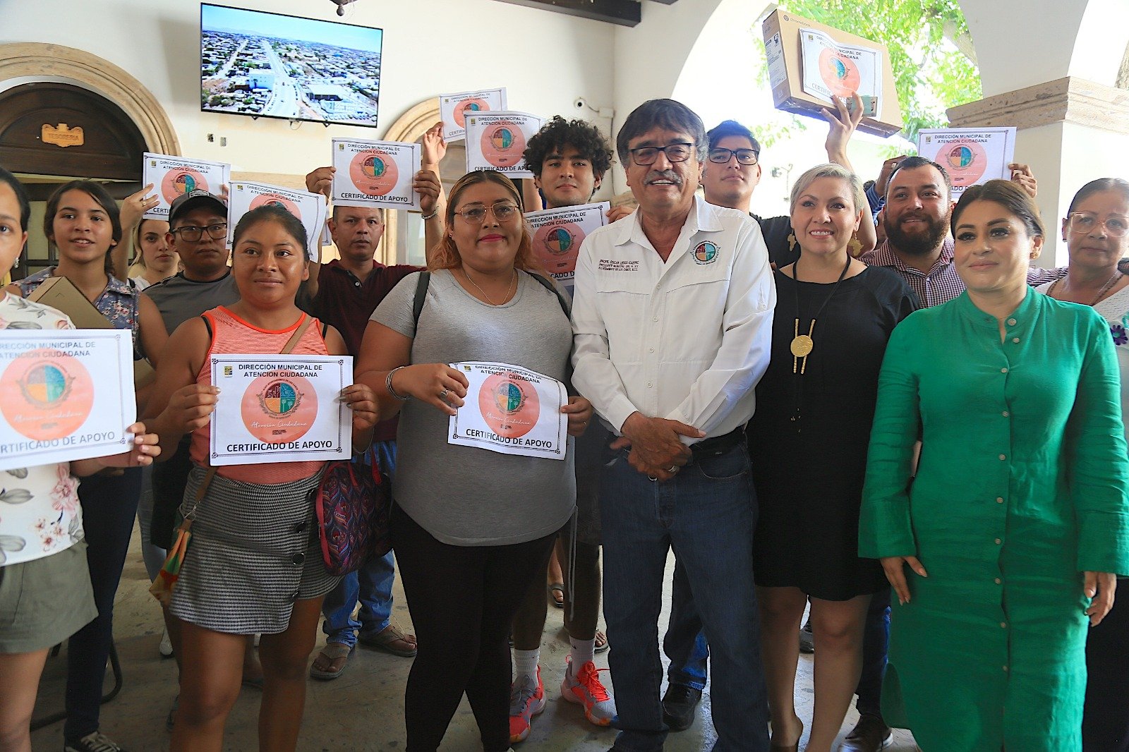 Por su parte, la titular de la Dirección Municipal de Atención Ciudadana, Dina Margarita De La Paz Araiza, indicó que fueron 14 las personas beneficiadas con la entrega de estos apoyos, mismos que fueron solicitados para solventar gastos relacionados con temas de salud; además de la entrega de dos computadoras portátiles para estudiantes, una de ellas en beneficio de una alumna habitante del Ejido La Candelaria en Cabo San Lucas.