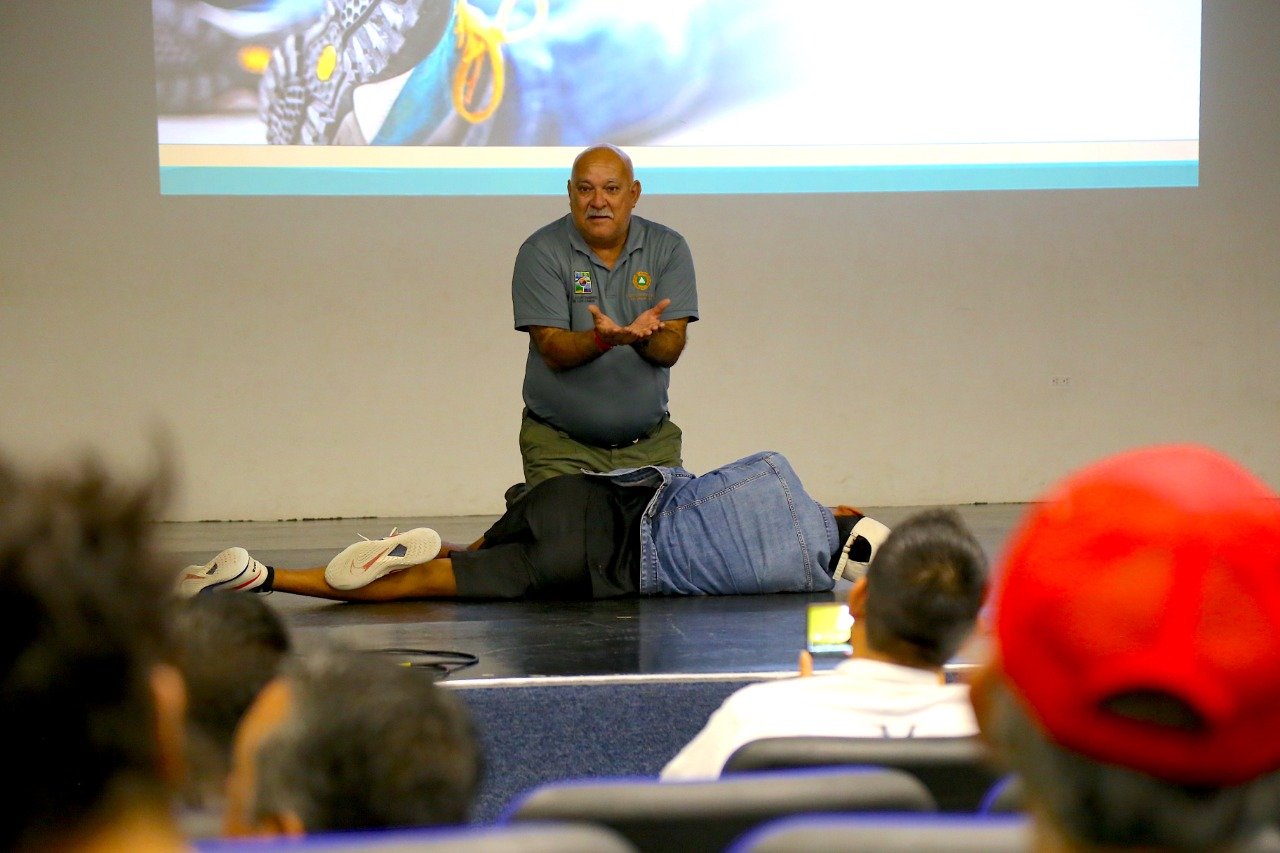 - El evento se realizó en las instalaciones de la Casa de Cultura “Prof. Alfredo Green González” de San José del Cabo, donde tras las instrucciones del personal de Protección Civil se llevaron a cabo ejercicios de prácticos con respecto a qué hacer si una persona tiene una emergencia.