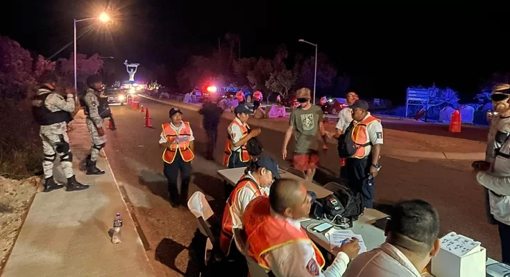 • Se establecen filtros de seguridad de manera estratégica, colocándolos en áreas de mayor índice de conflicto vehicular. Los operativos se realizan en San José del Cabo y en Cabo San Lucas en conjunto con el personal de la Guardia Nacional, Policía Municipal y de instituciones de salud.