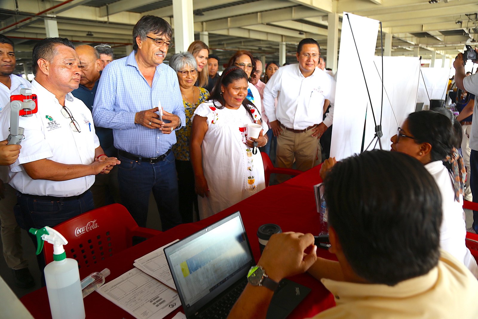 Luego de abanderar el corte de listón que marcó el inicio de la Feria de Empleo 2022, -acompañado del representante del Gobierno del Estado en el municipio, Carlos Castro Ceseña y el director general del Servicio Estatal de Empleo en Baja California Sur, Vladimir Torres Navarro, entre otras autoridades-, el presidente municipal realizó un recorrido por cada uno de los módulos que fueron colocados por las diferentes empresas.