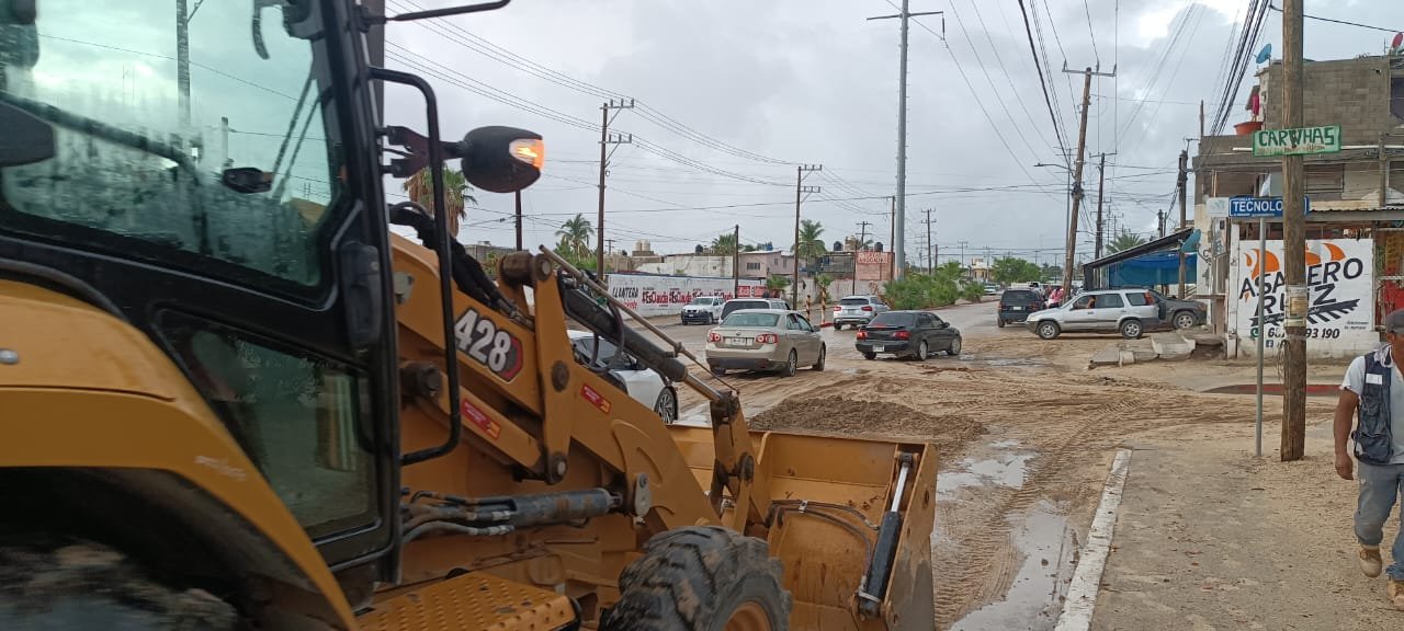 ‘’Las lluvias que se empezaron a sentir alrededor de la 5:00 la madrugada de este viernes dejaron algunas afectaciones en la avenida Nicolás Tamaral en Cabo San Lucas y otras calles, mismas donde una vez que pasaron las precipitaciones se dio inicio con la rehabilitación con el desazolve y retiro de arena’’, informó el presidente municipal, Oscar Leggs Castro.