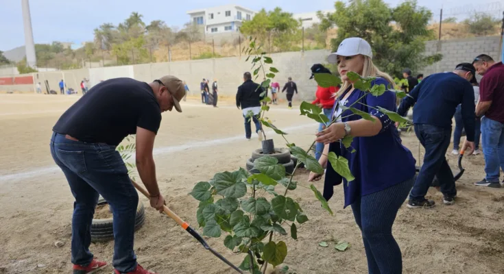 Como parte de las actividades para conmemorar la semana de la Educación Ambiental, personal de la Dirección General de Ecología y Medio Ambiente que encabeza Raúl Verdugo Montaño en conjunto con personal de la dependencia, del Organismo Operador Municipal del Sistema de Agua Potable, Alcantarillado y Saneamiento de Los Cabos y de la Dirección General de Servicios Públicos, efectuaron la campaña de reforestación, conservación y limpieza en la cancha de la colonia Santa Rosa, con el objetivo de contar con espacios públicos y áreas de esparcimiento en óptimas condiciones para el disfrute de las familias cabeñas.