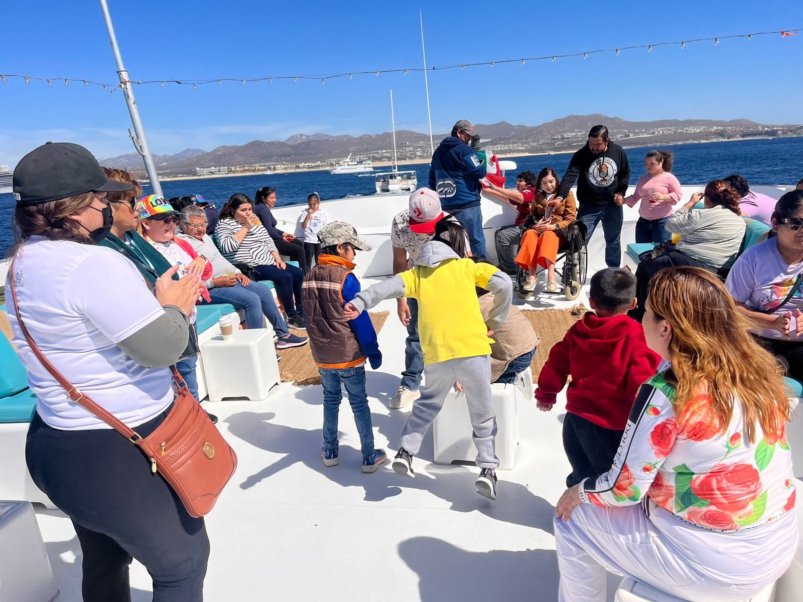 - Un total de 30 niñas, niños y jóvenes con discapacidad disfrutaron por primera vez del avistamiento de ballenas en la Bahía de Cabo San Lucas.