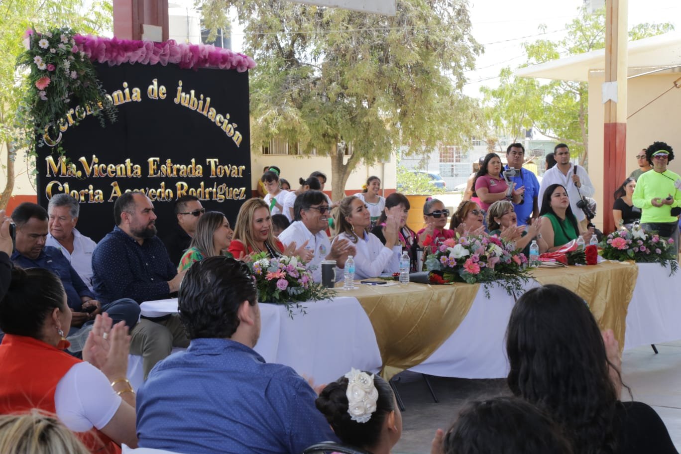 ‘’El día de hoy reconocemos a las maestras jubiladas por su invaluable labor en la docencia de manera profesional al lado de los niños y niñas, muchas felicidades por el aporte a la educación durante estos años; seguramente van a extrañar el plantel y la comunidad estudiantil, hoy se van a sus casas a ese merecido descanso tras haber estado frente a los grupos impartiendo conocimiento a quienes en un futuro dirigirán nuestro municipio, estado o país’’, reiteró el presidente municipal Oscar Leggs Castro.