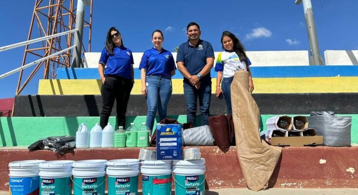 Entre los insumos recibidos se incluyen malla sombra, pegamento, pintura y productos de limpieza, los cuales ayudarán a renovar y acondicionar este importante espacio deportivo para los usuarios.
