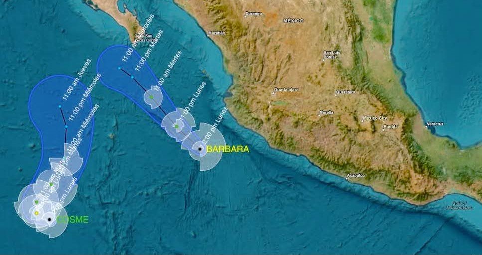 El director municipal de Protección Civil, Francisco Cota Márquez informó que, por el momento, la tormenta tropical “Cosme” y el huracán categoría 1 “Bárbara” no representan un riesgo inmediato para las costas del municipio de Los Cabos.