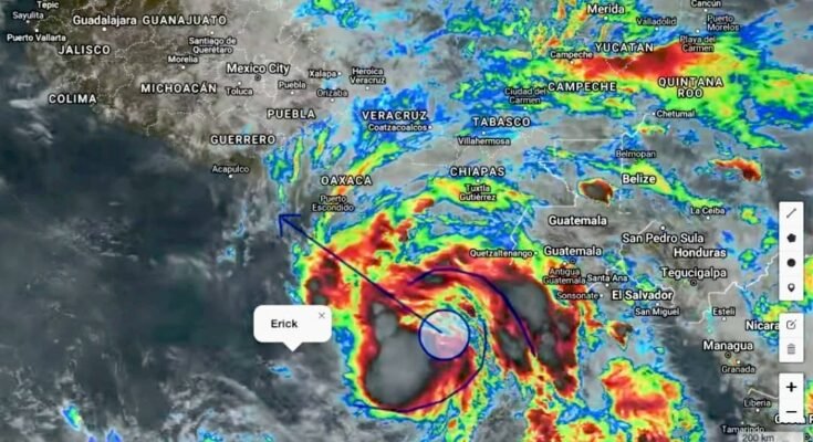 - Se prevé que “Erick” se convierta este miércoles en huracán categoría 1 y que el jueves alcance la categoría 2, con una posible trayectoria hacia costas de Guerrero.