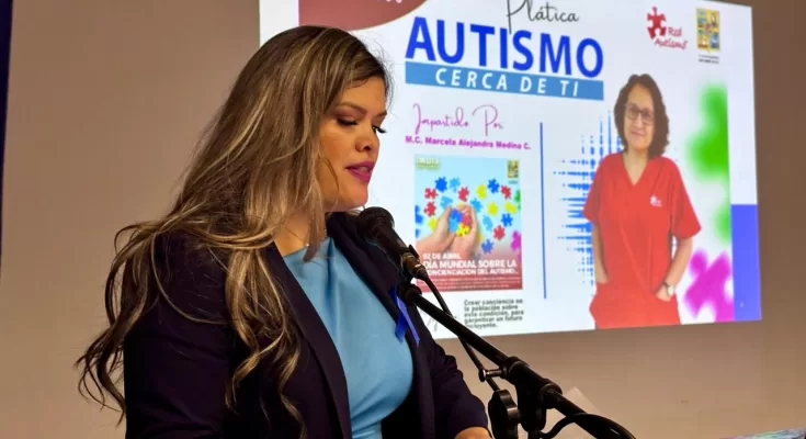La ponente Marcela Medica Carriola, informó que el objetivo de su plática “Autismo Cerca de Ti” gira entorno a la comprensión y procesamiento del autismo, brindando las herramientas necesarias para ser una sociedad más incluyente, y esto solo se logra visibilizando al trastorno como parte de uno mismo y que se encuentra presente todos los días.