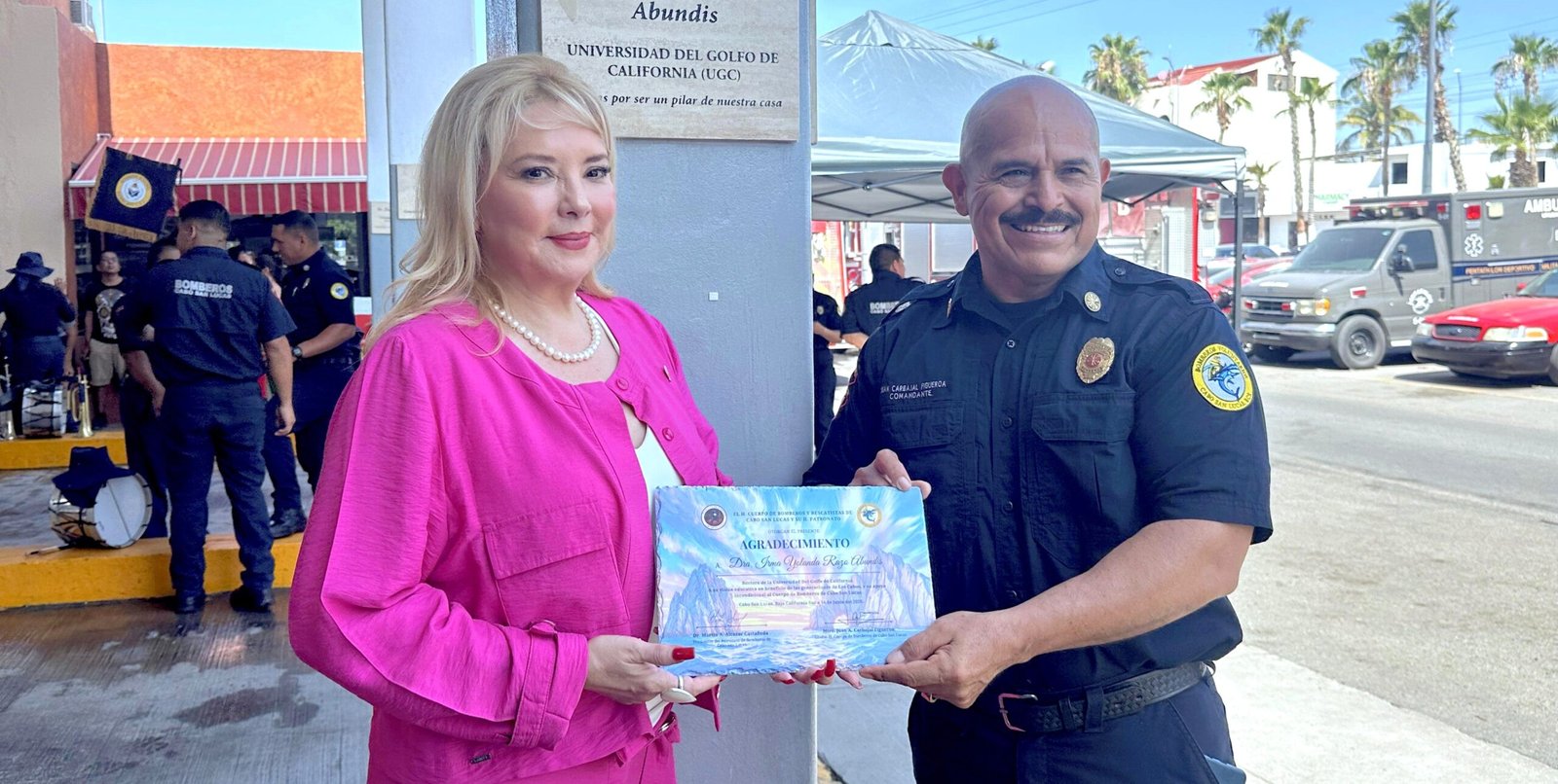 El Cuerpo de Bomberos y Rescatistas de Cabo San Lucas reconoció a la Universidad del Golfo de California por su compromiso en la formación académica de la comunidad. Como agradecimiento, la institución entregó la distinción a la rectora, Yolanda Razo Abundis, destacando su invaluable apoyo en el desarrollo profesional y educativo de los integrantes de Bomberos Cabo San Lucas.