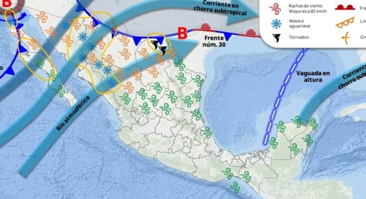 Detalló, que lo anterior será originado por la presencia de una circulación ciclónica que estará interactuando con los frentes fríos 30 y 31, así como corrientes en chorro polar y subtropical, lo cual dará origen a la tercera Tormenta Invernal de la temporada.