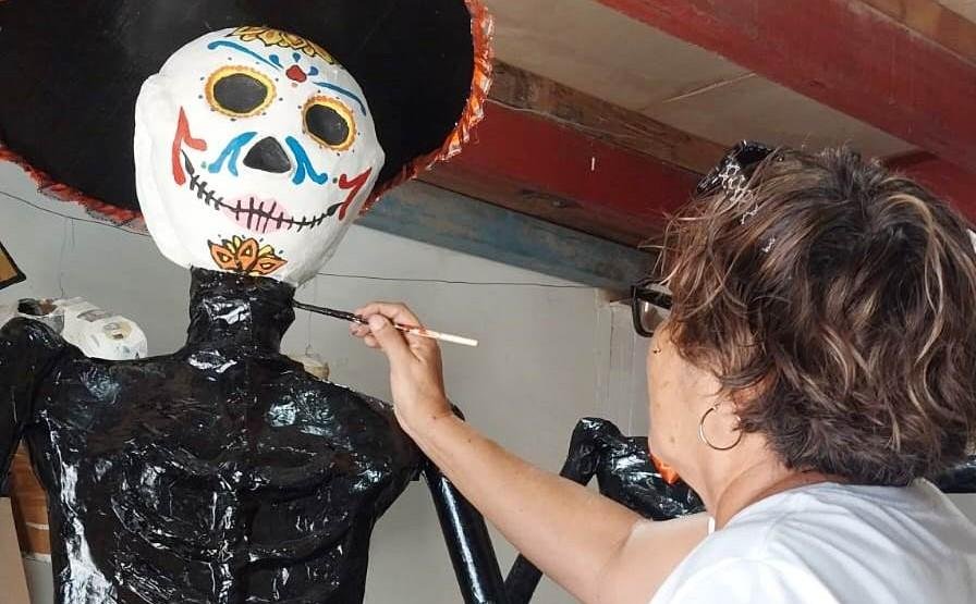 Para el desarrollo de los trabajos, mencionó que se cuenta con el apoyo de un equipo de cinco personas que tienen a cargo la creación de diversos temas y personajes representativos y una vez que concluyan con las labores alusivas al Día de Muertos, se avocarán a las manualidades para los carros alegóricos del Desfile Navideño 2023.